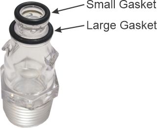 When assembled, inspect the gaskets to ensure they are seated evenly. An uneven seal will cause the nozzle to not opperate properly.